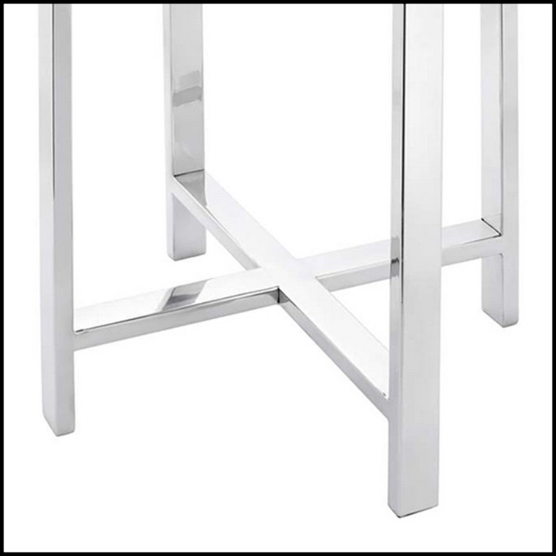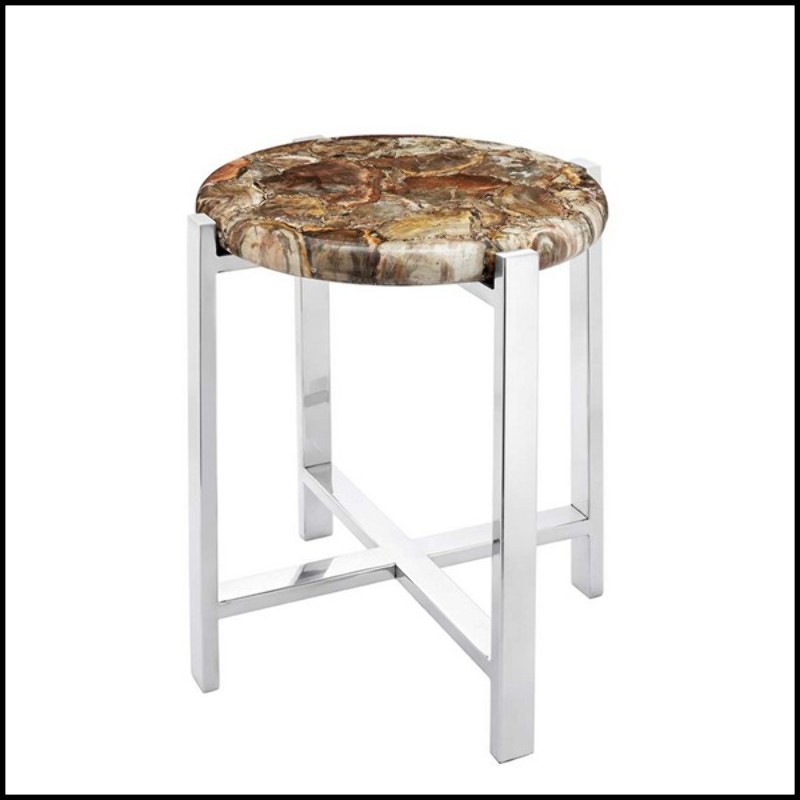 Side table with natural petrified wood top and with base in metal in chrome finish 162-Petrified top