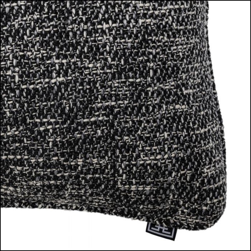 Square cushion with rounded corners, covered in black Cambon fabric.