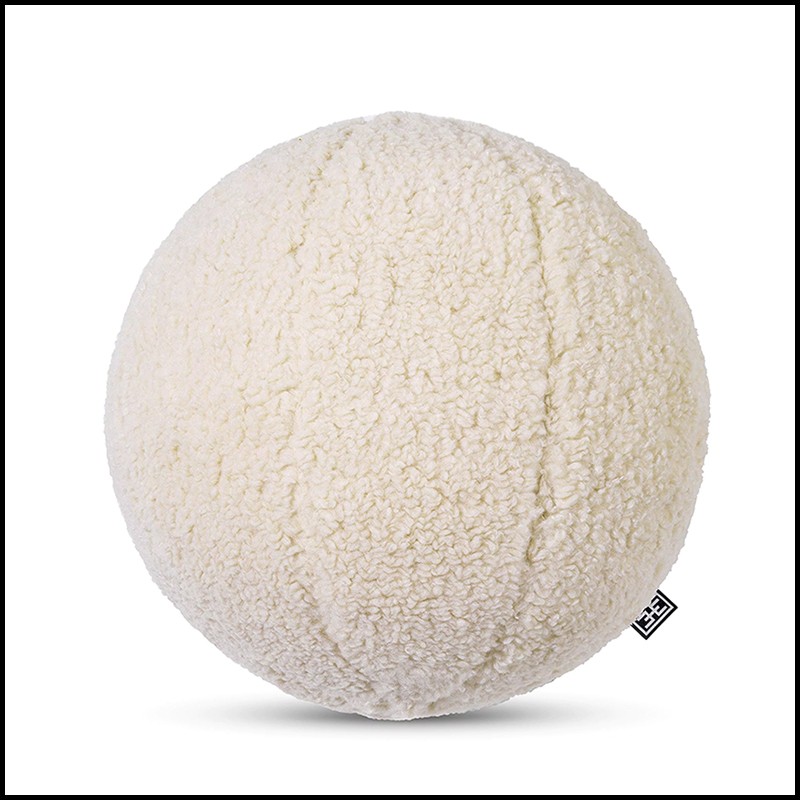 This ball-shaped cushion, elegantly covered in fabric, will bring an
