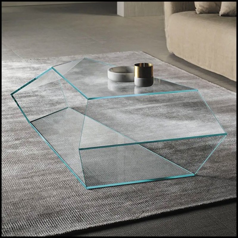 Coffee table with trapezoidal shape made with clear glass 194-Trapez Glass