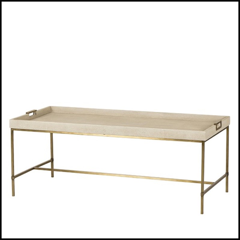 Coffee table Shagry Cream with base in stainless steel in brass finish.