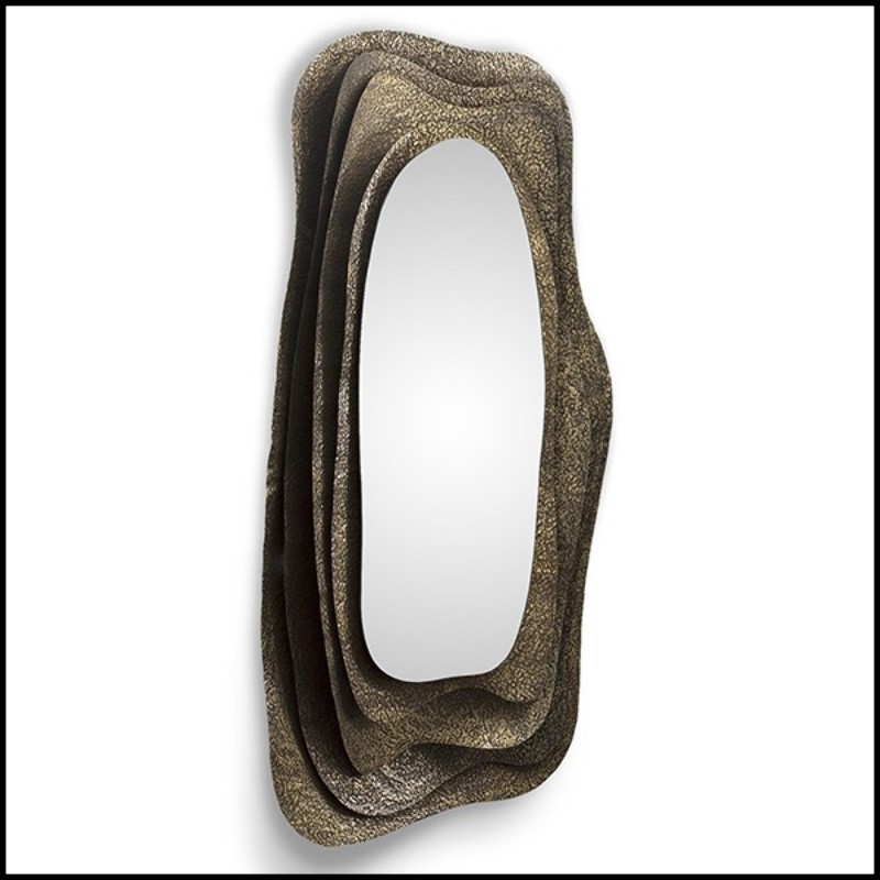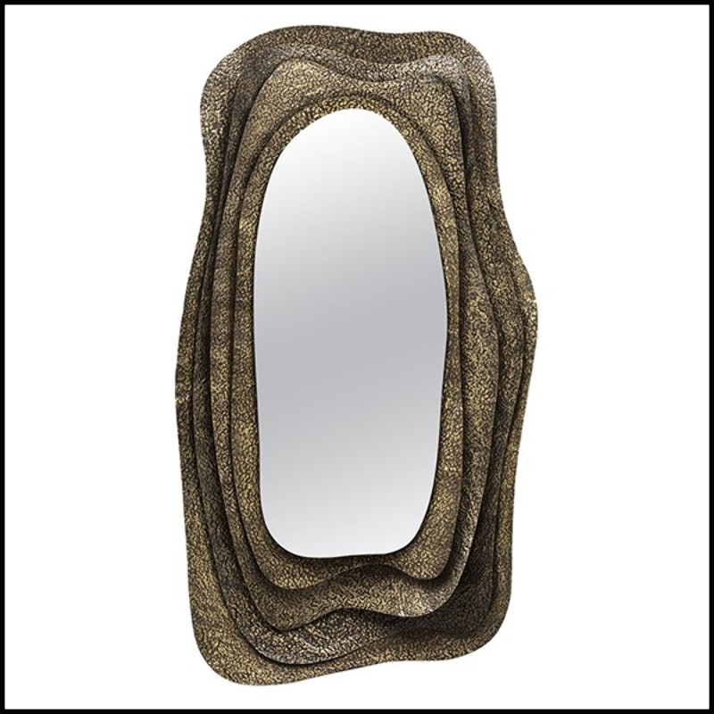 Discover the Miroir Kumi I from Brabbu, a true masterpiece of wall decoration that combines elegance and sophistication. This design mirror features a rectangular shape with a thick frame made of solid hammered brass, with a brilliant finish that reflects light and adds a touch of luxury to your interior. With its high-quality glass mirror, this modern mirror is perfect for those looking for high-end furniture.