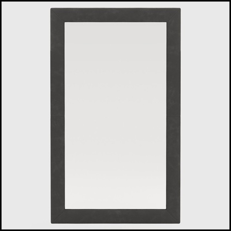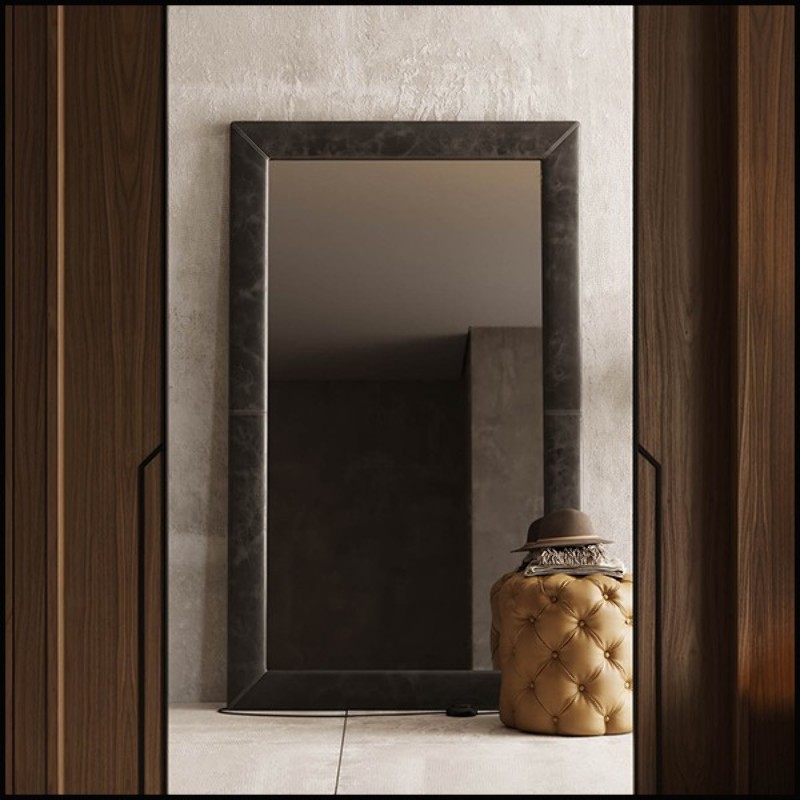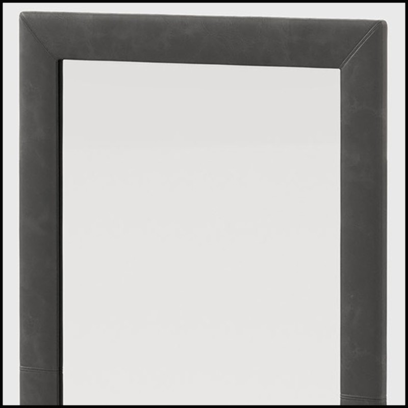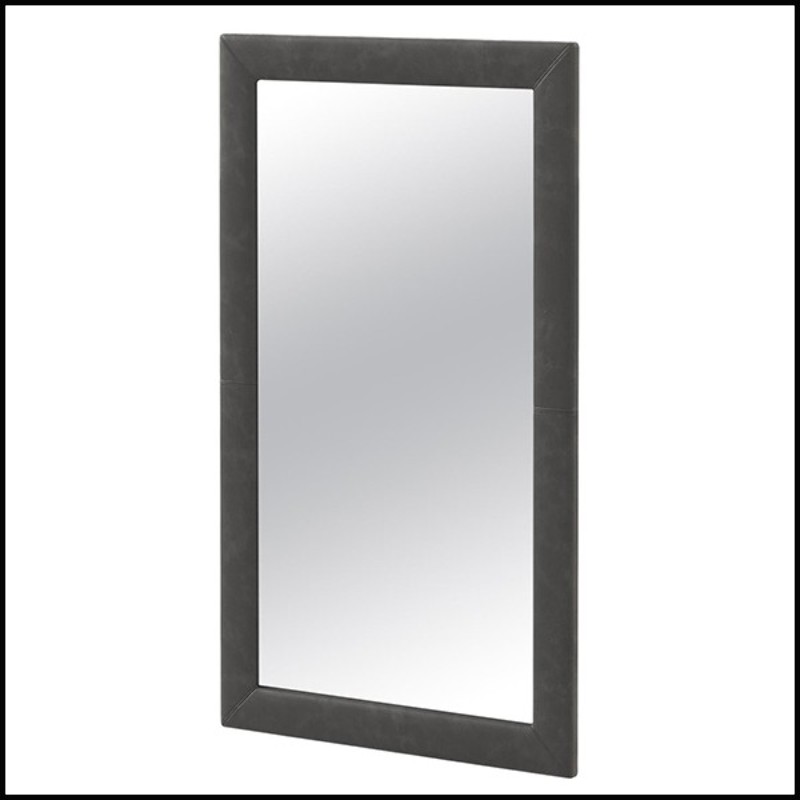 Mirror with a frame in solid wood covered with natural dark grey leather, Cat 3.