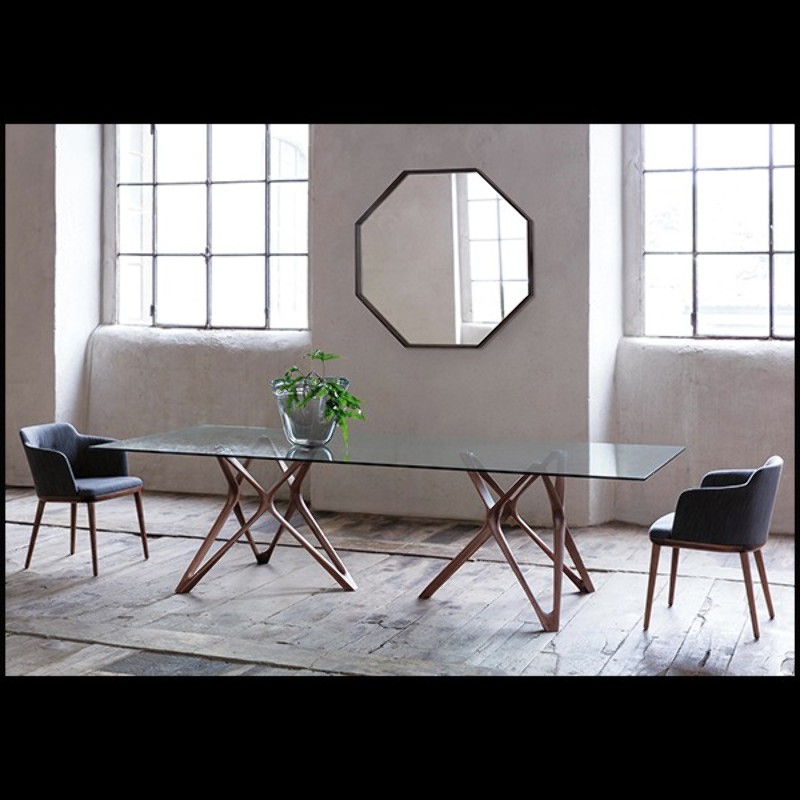Dining Table Giulia with 2 bases in solid walnut wood,