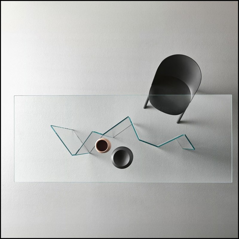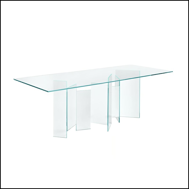 Table with big dimension top in tempered extra clear. Central base made of several elements put next