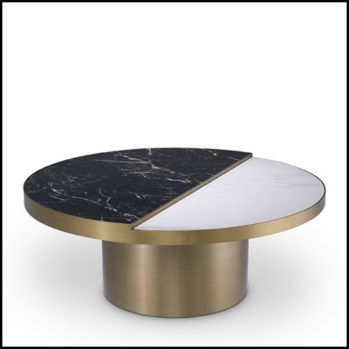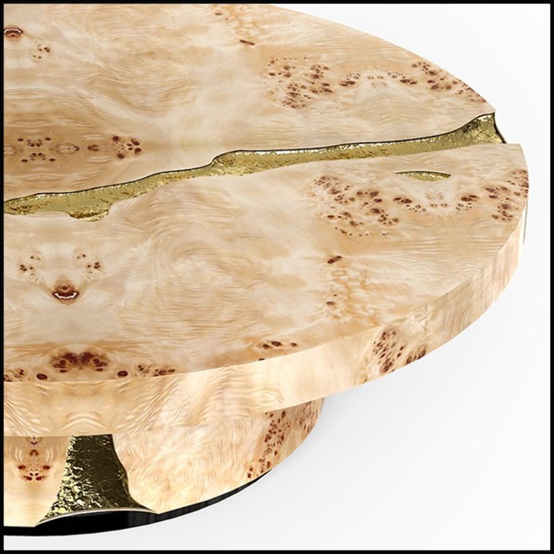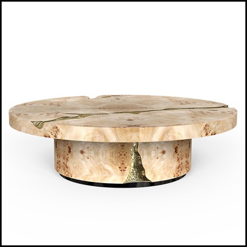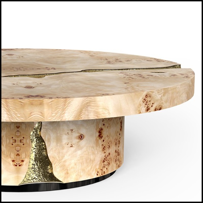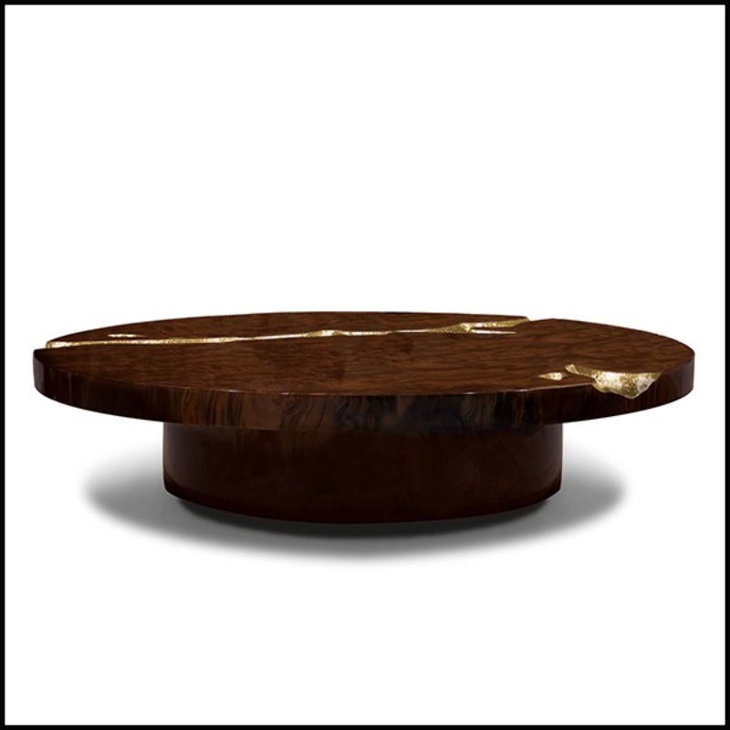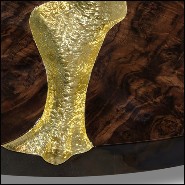 Coffee table in veneered solid walnut wood with polished hammered brass details carved on base and top 145-Excellence Walnut