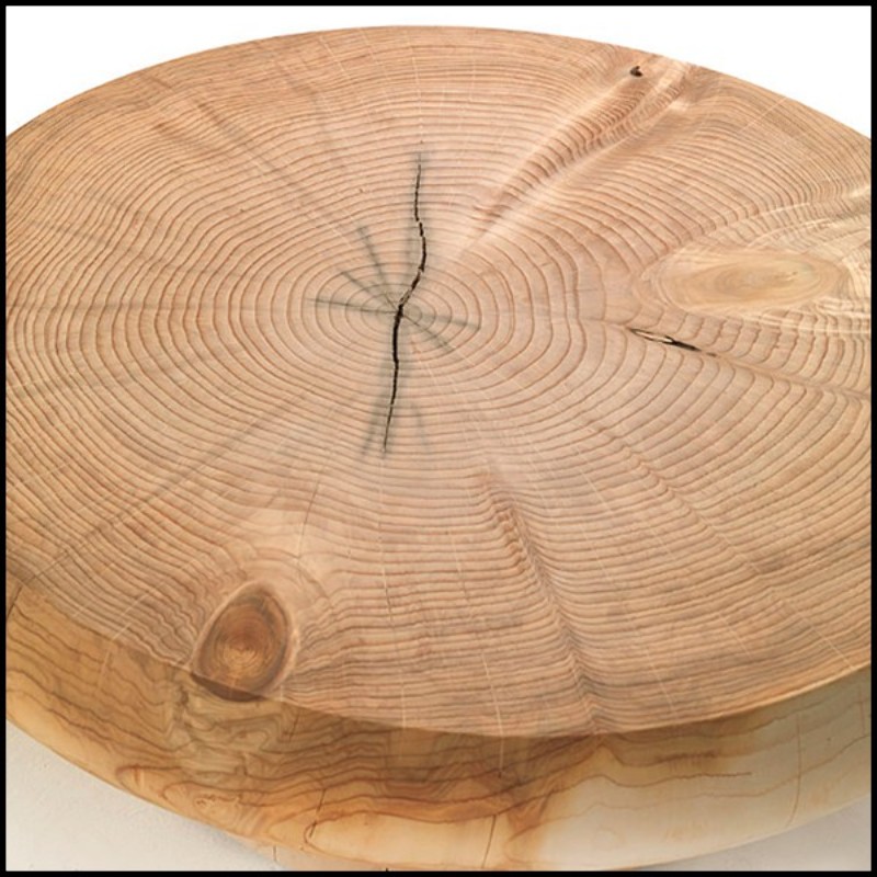 from a solid block of cedar wood. Its sculptural mushroom-like