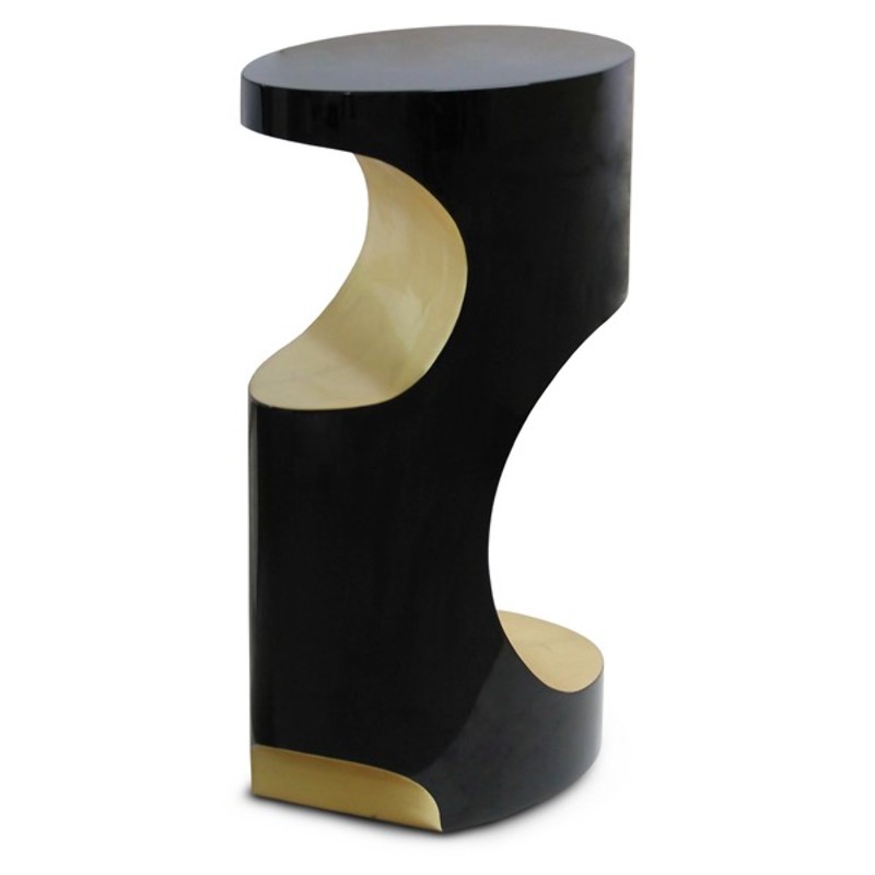 Crafted from fiberglass with a black lacquered finish and enhanced by gold leaf details, this side table features a striking glossy surface that reflects light beautifully, adding depth and sophistication to your space. The combination of materials creates a bold yet elegant aesthetic, ideal for modern and high-end interiors.