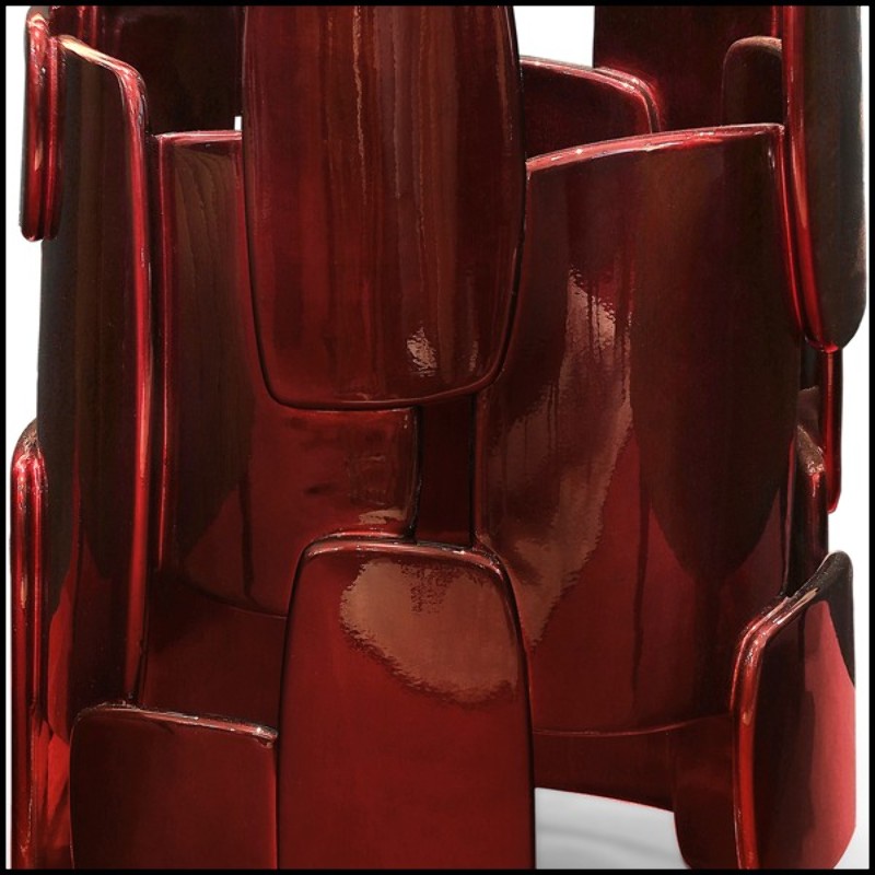 Side Table with silver leaf with shades of black and red glossy varnished 155-Brazero
