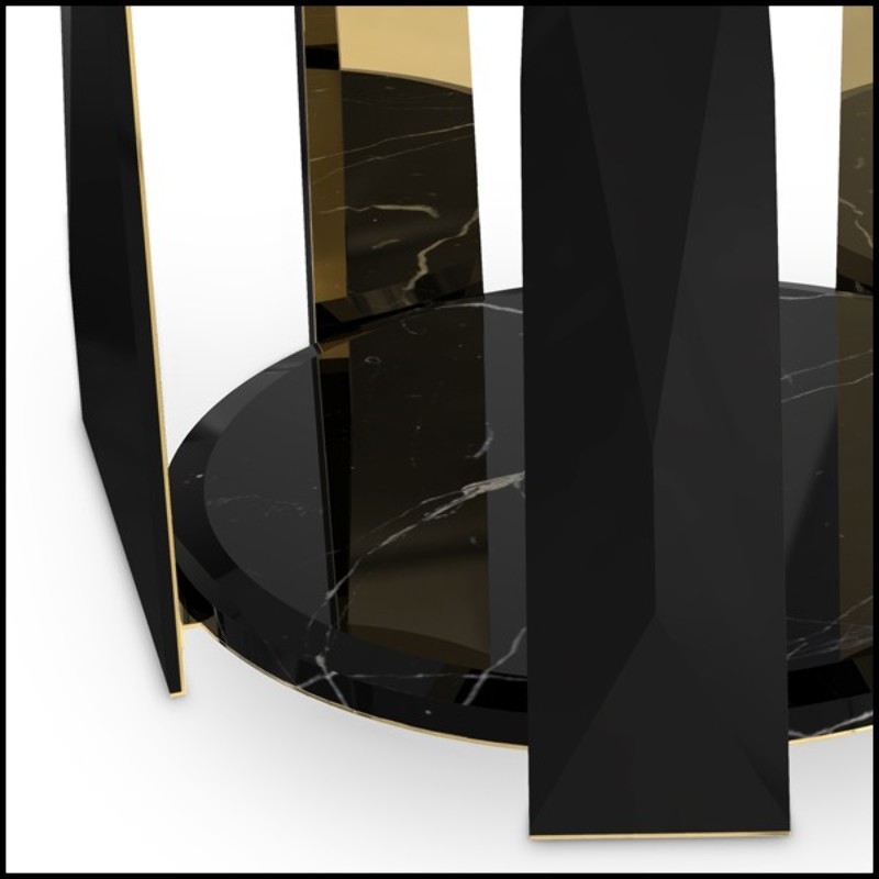 Side table with black lacquered wood and five gold plated polished brass arms in the inside 164-Five Arms