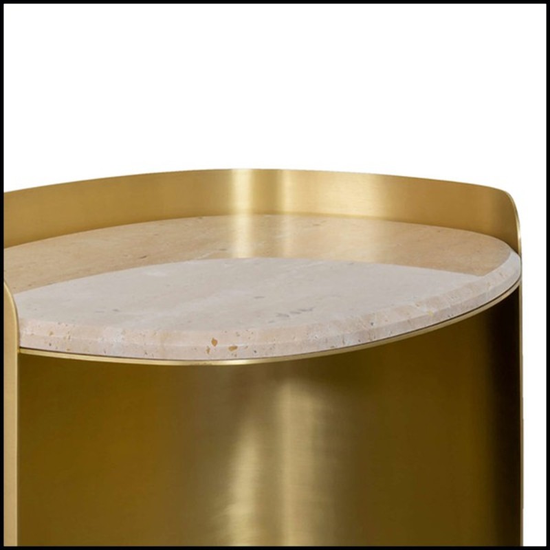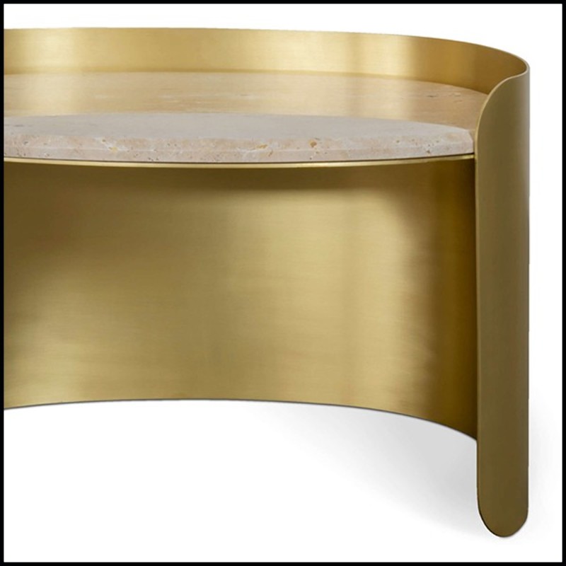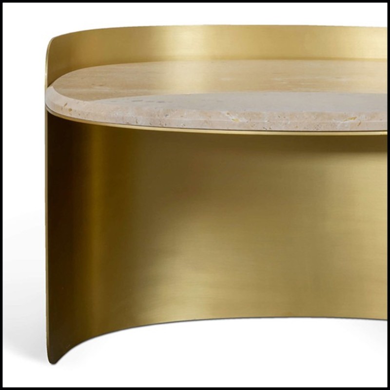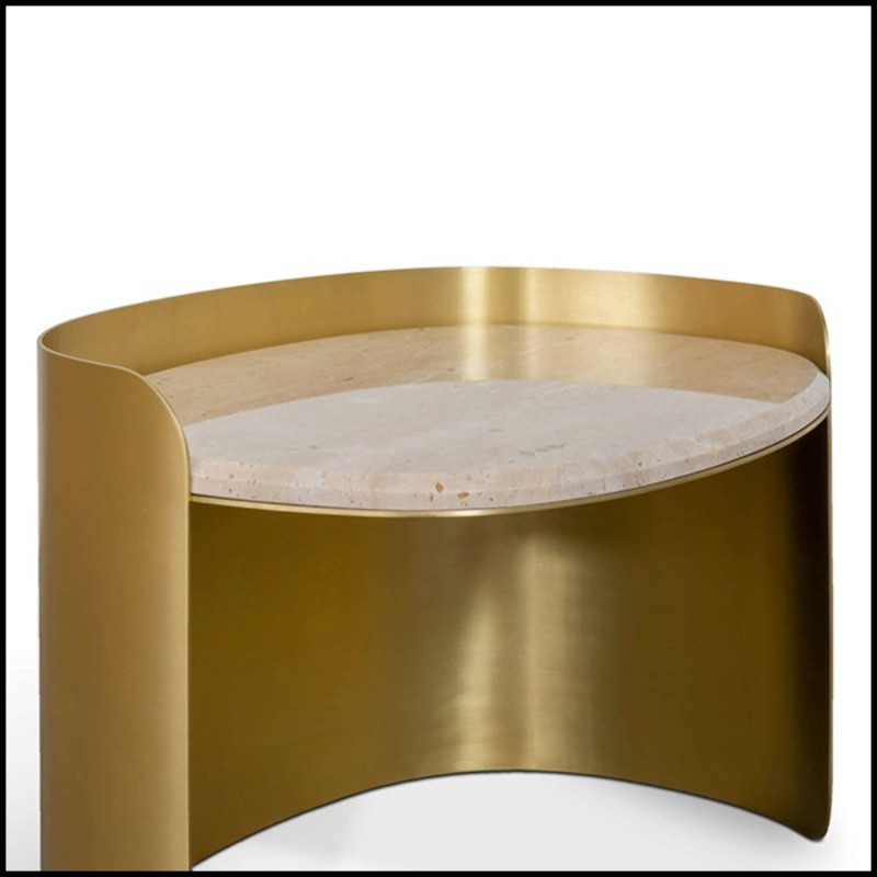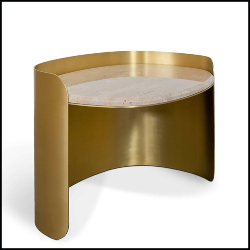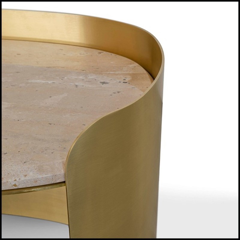 Side Table oval in solid brass aged finish and travertine 157-Curved Brass Oval