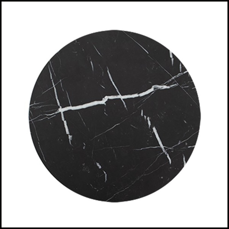 with its pyramidal metal base and black Marquina marble top, offering an elegant