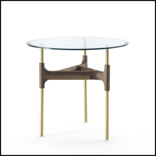 and steel feet in brass finish. With bevelled tempered clear glass top
