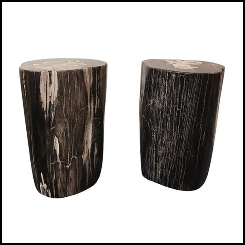 Set of 2 Side Table Petrified in solid petrified wood from Indonesia.