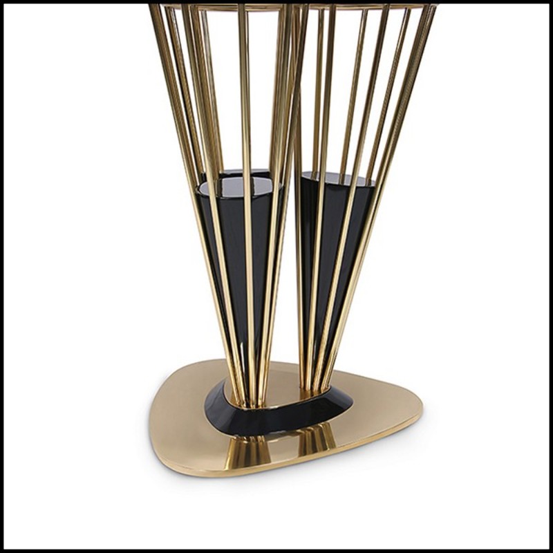 structure in wood and polished brass with a Black Glossy finish.