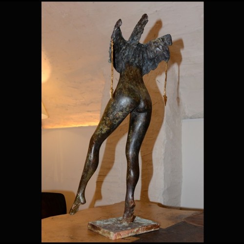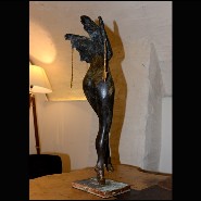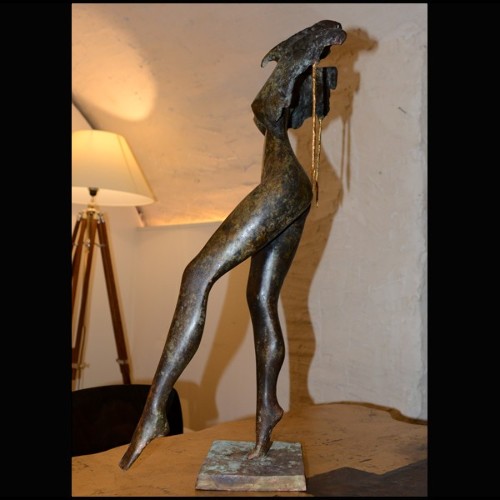 Sculpture woman with cock head on base handmade in bronze 19-Femme à tête de coq