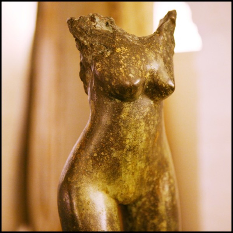 Sculpture Body Lady, in solid bronze, on cargo tole