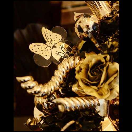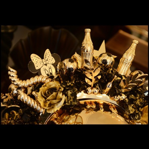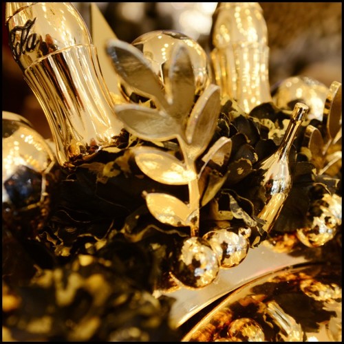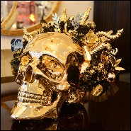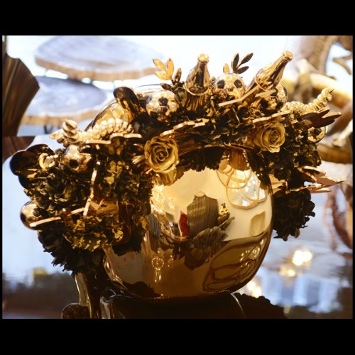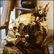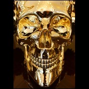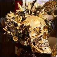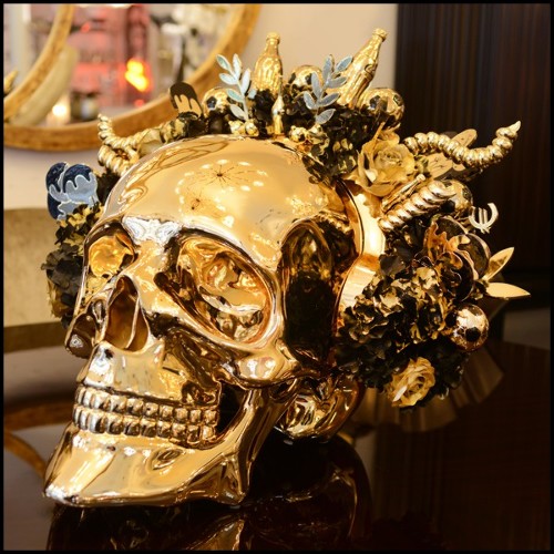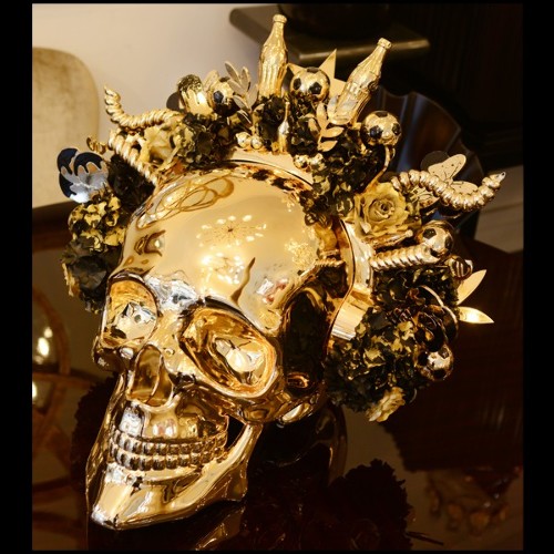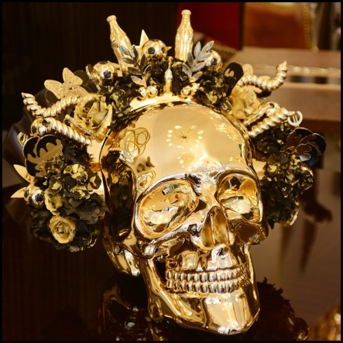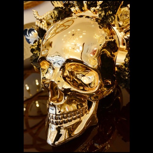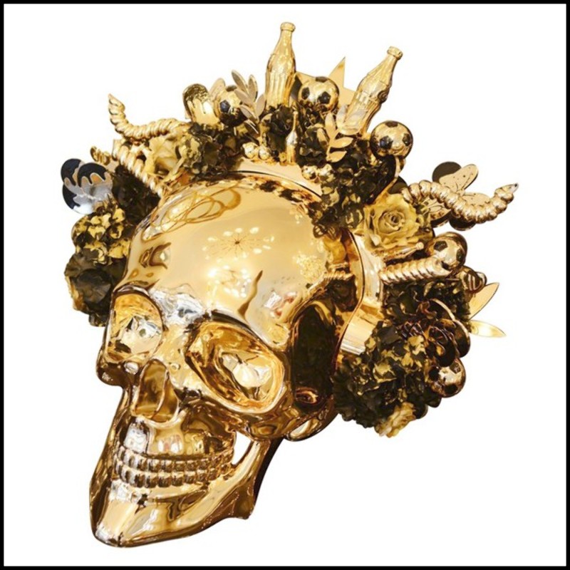 Sculpture Skull Golden Youth made in marble dust resin and chromed in gold finish.