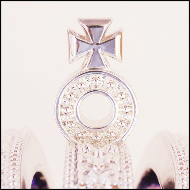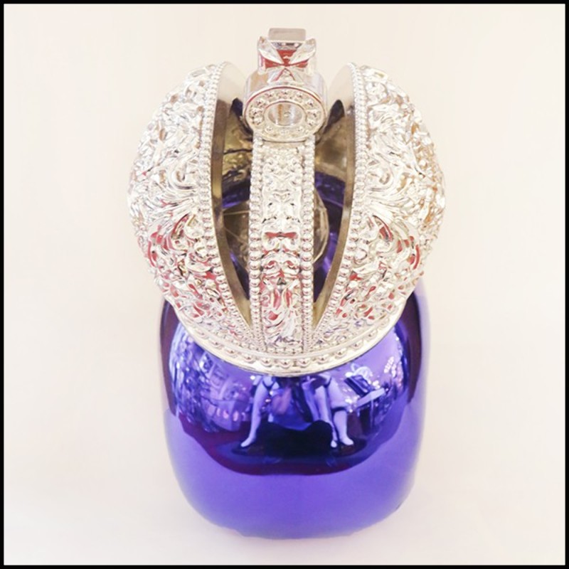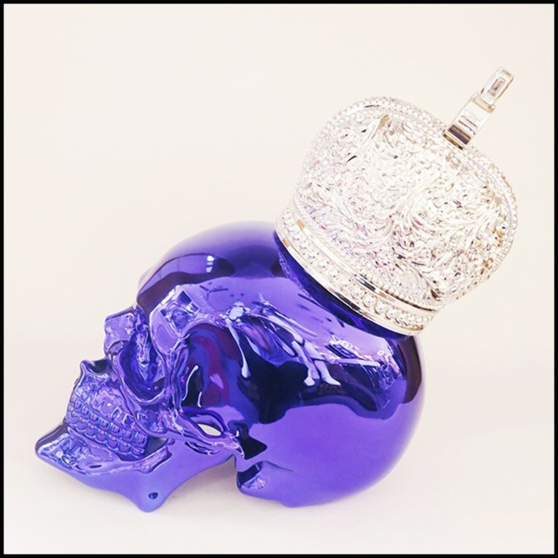 Sculpture made in marble dust resin chromed in blue finish with christianism crown PC-Skull Blue Christianism