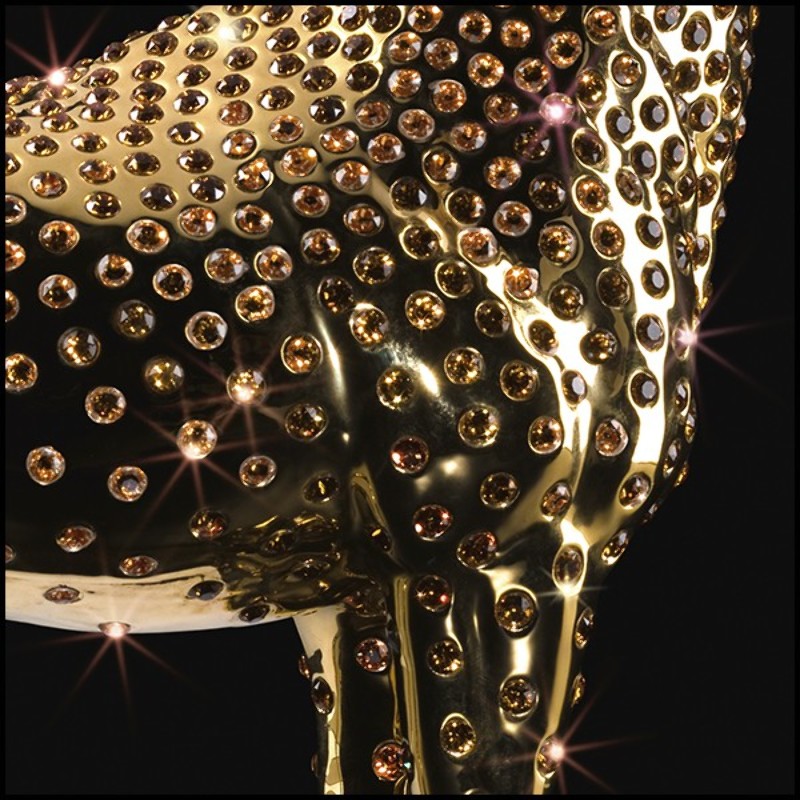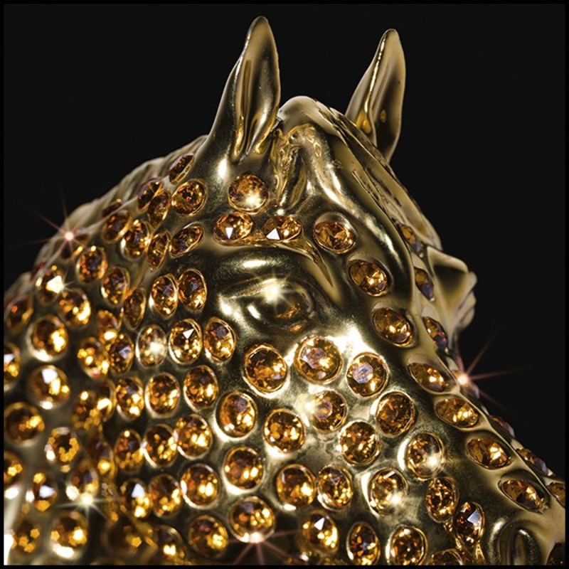 Sculpture with amber crystals in porcelain and gold plated 196-Gold Horse Amber