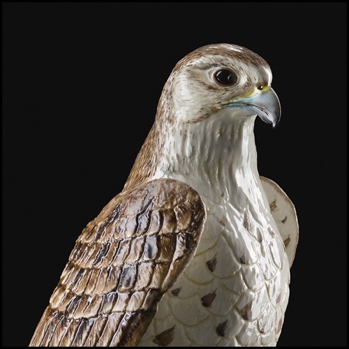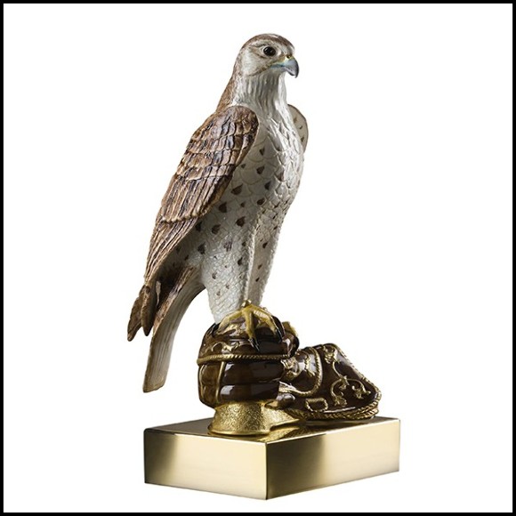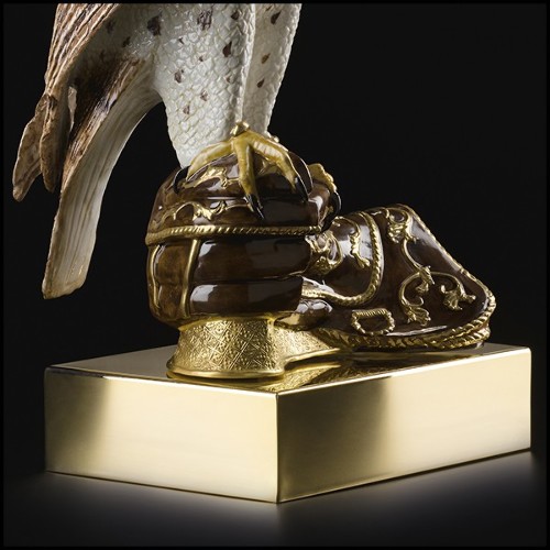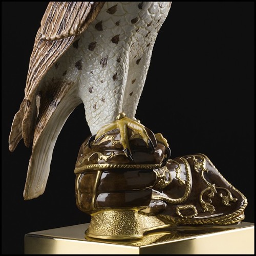 Sculpture Falcon in porcelain finishing in gold 24k 196-Falcon