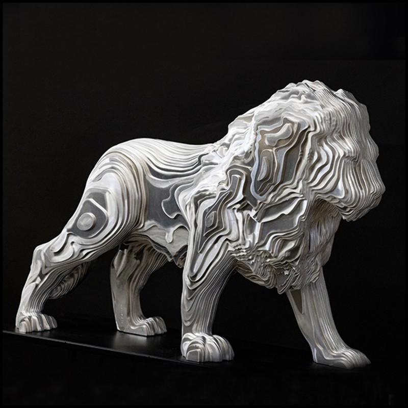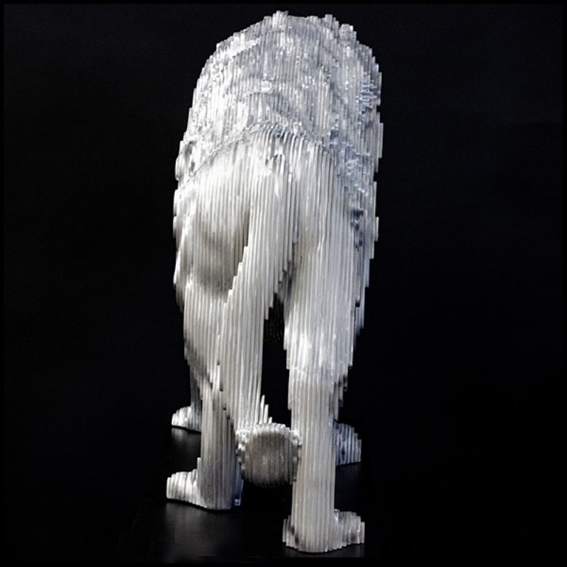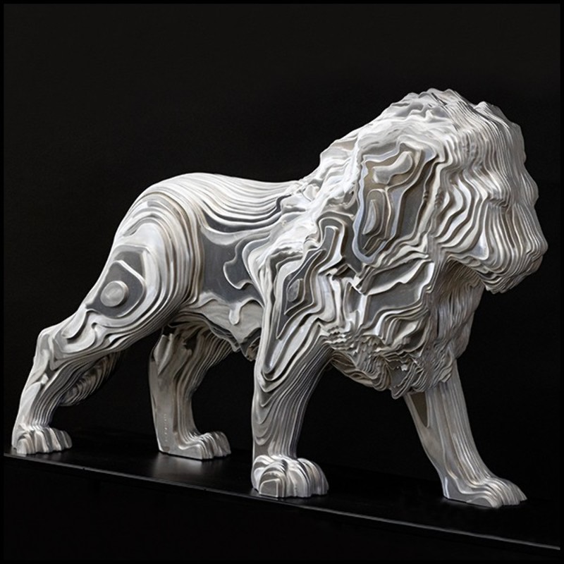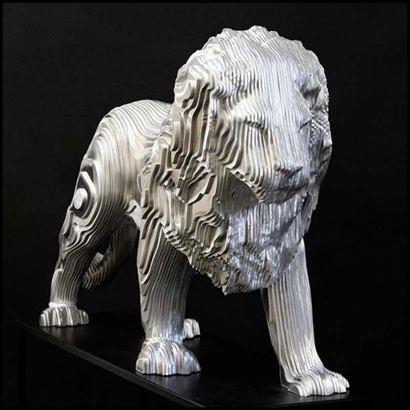 Sculpture Lion Polished made with aluminium hand-crafted plates.