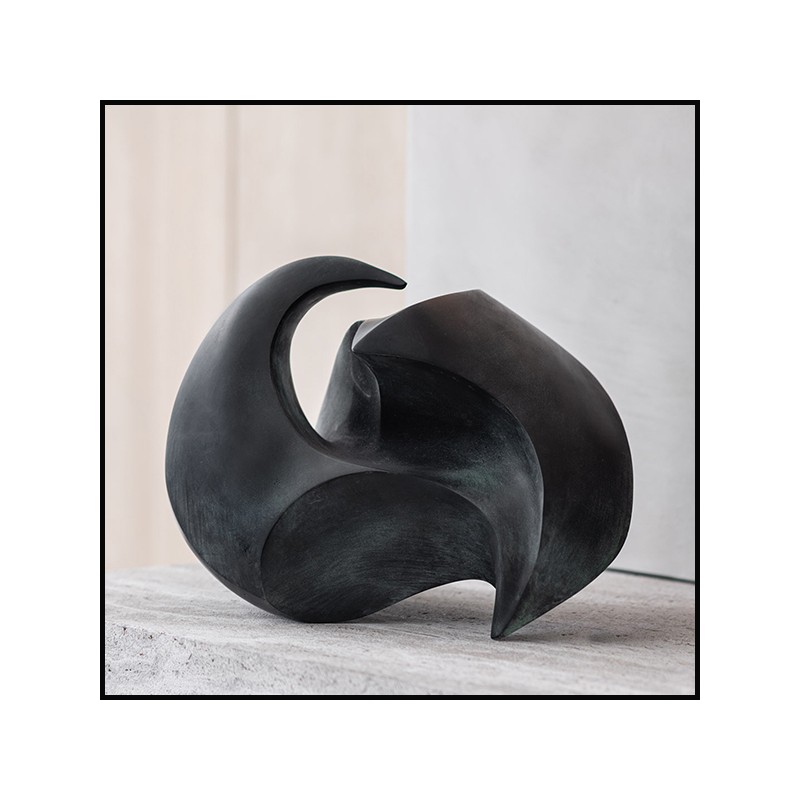 Sculpture Fluid Complexity all in solid bronze, dark blue-green finish.
