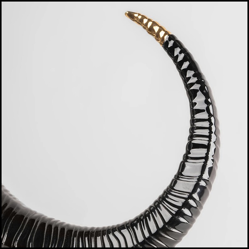 the finesse of porcelain with a modern metal base and a shiny golden finish.