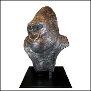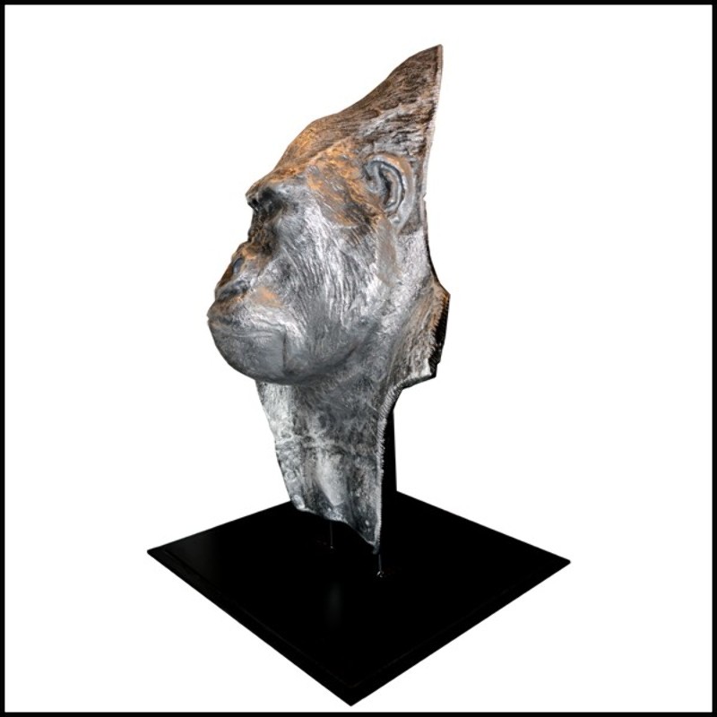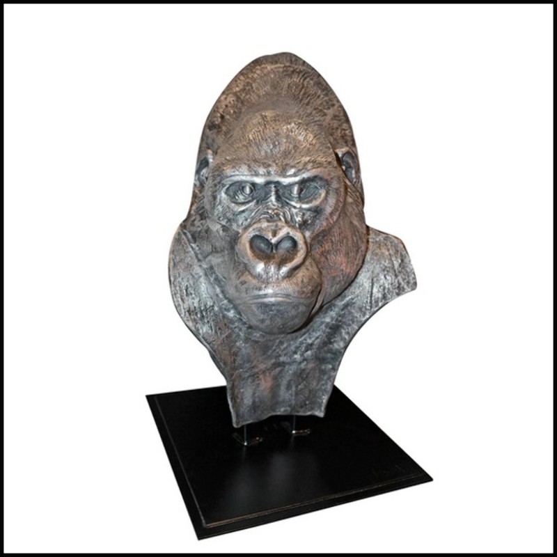 Sculpture metal Gorilla Bust worked by hand on base PC-Metal Gorilla