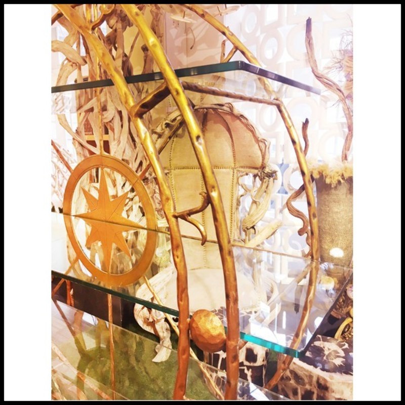 The Zodiac Signs Bookcase stands out with its golden metal frame,