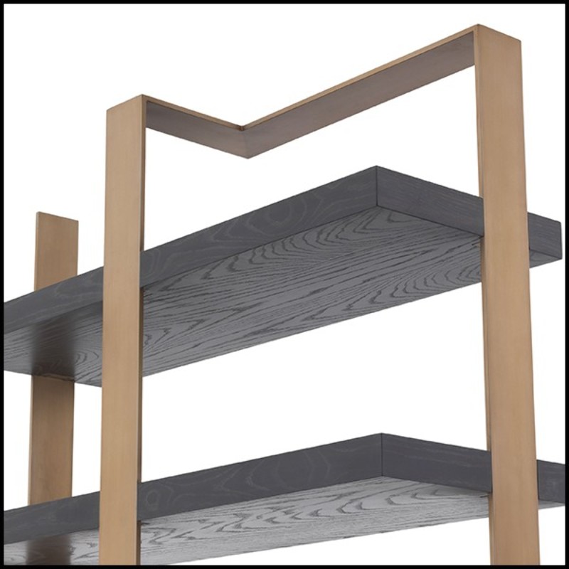 This cabinet design made of stainless steel and oak wood is available in a brushed brass and charcoal grey crown finish, offering a unique style to your interior decoration. To find similar products, visit our Cabinet section.