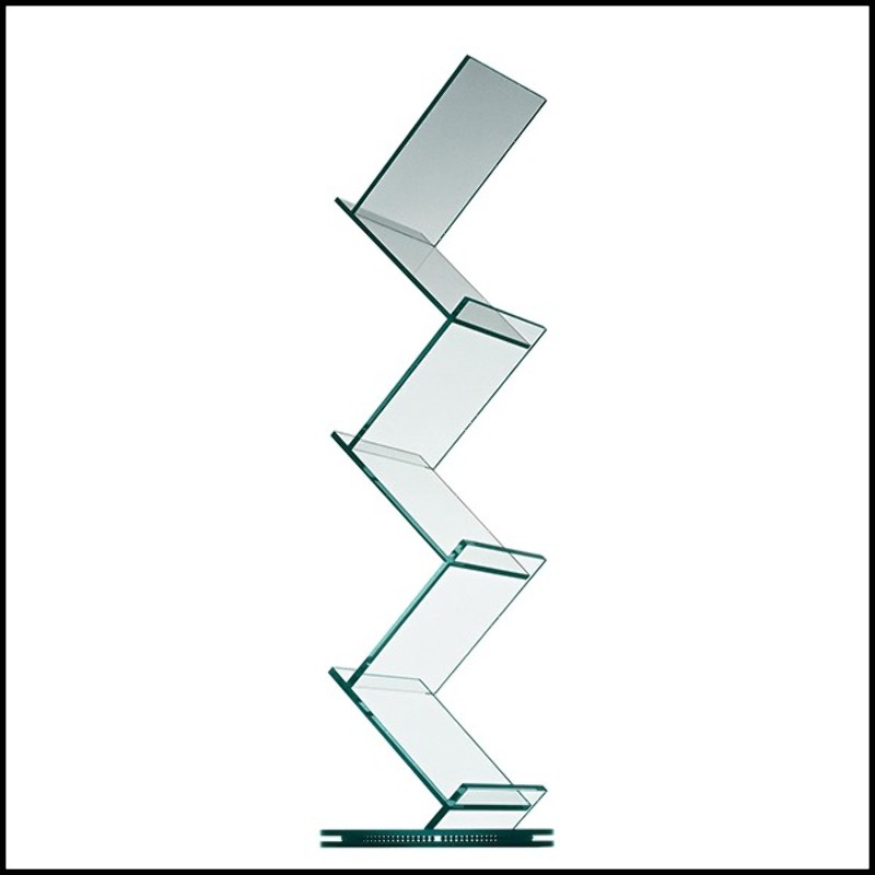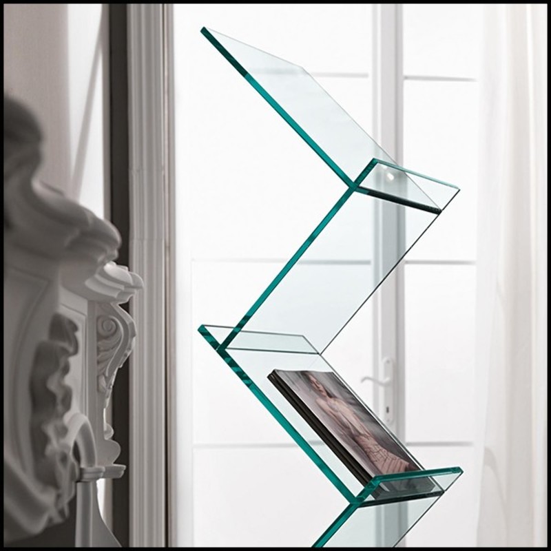 Crafted entirely from clear glass, its 6 inclined shelves create a