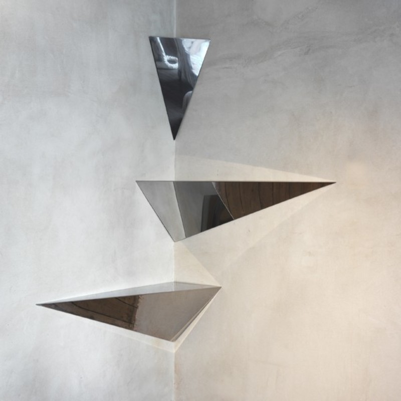 The Henri shelves by Opinion Ciatti are crafted from polished stainless