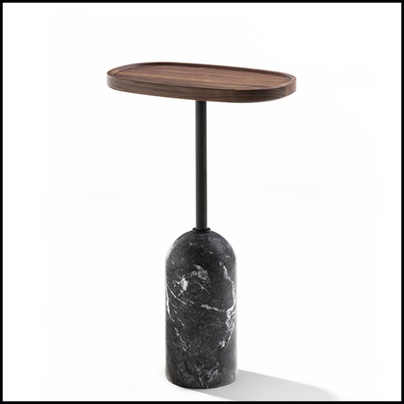 oval with Carnico dark grey marble base with black matte metal rod.