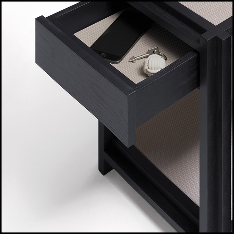 Side table Ally with a structure in solid wenge wood in black matte finish.