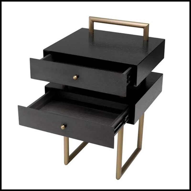 oak veneer and brass details with a superb brushed brass finish, making it