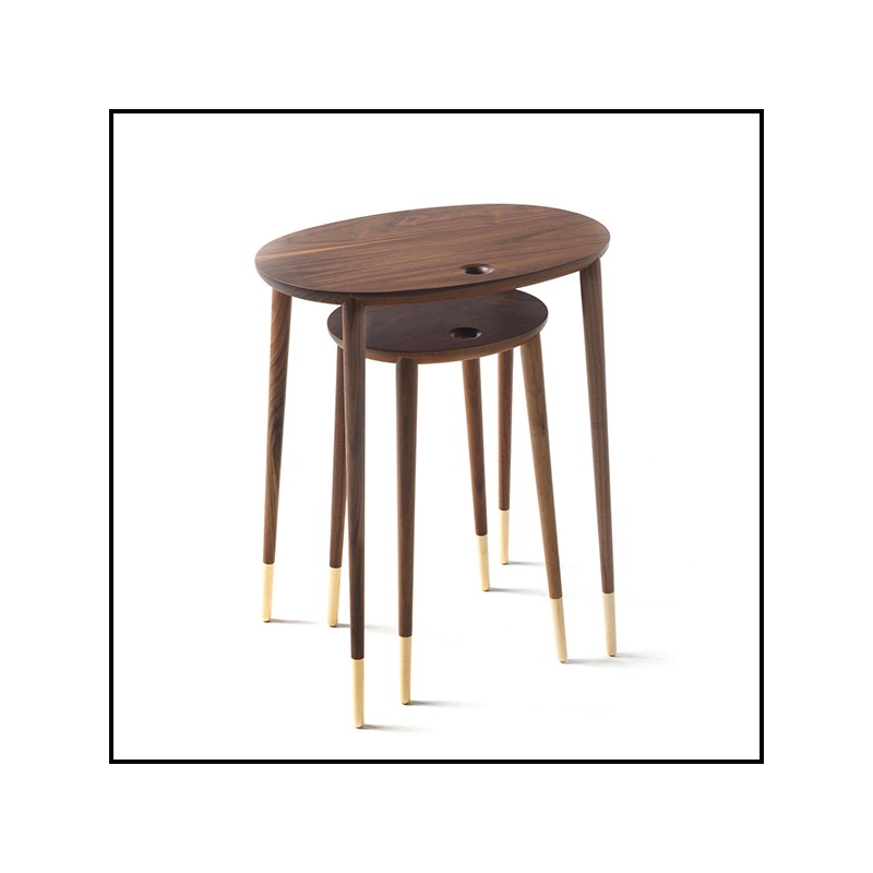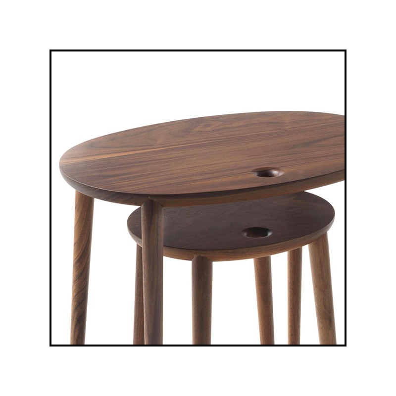Set of 2 Side Tables Thema in solid walnut wood,