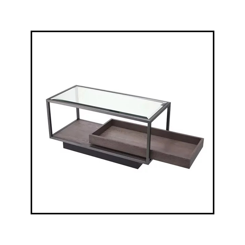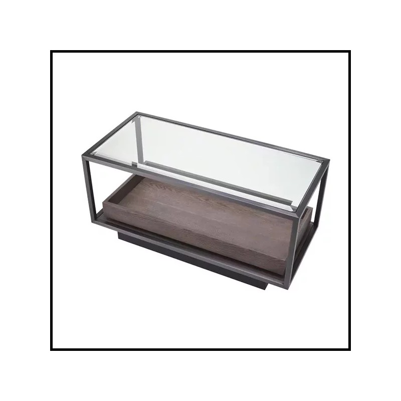 a sophisticated brushed brass finish, complemented by a clear glass top