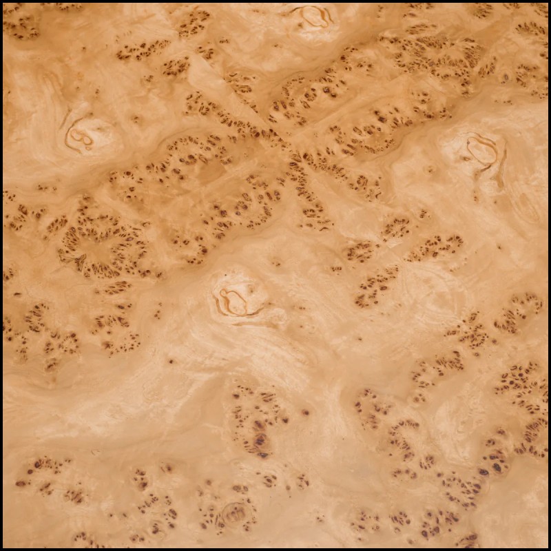 mappa burl veneer, elegantly paired with an aged brass finish.