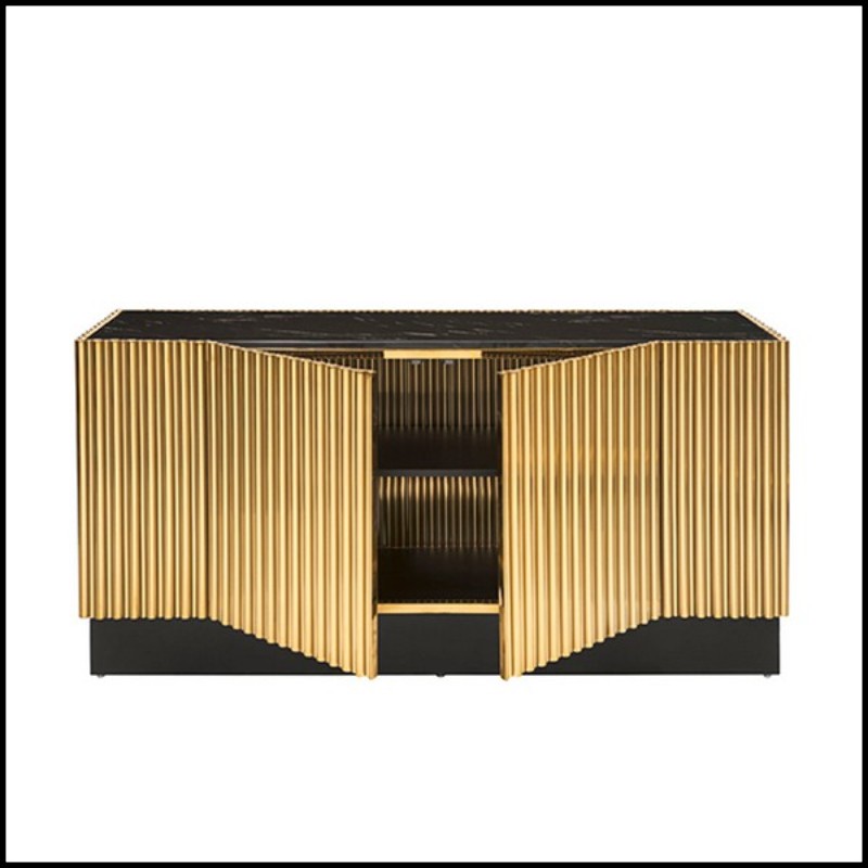 Black marble top. Equipped with 2 doors.