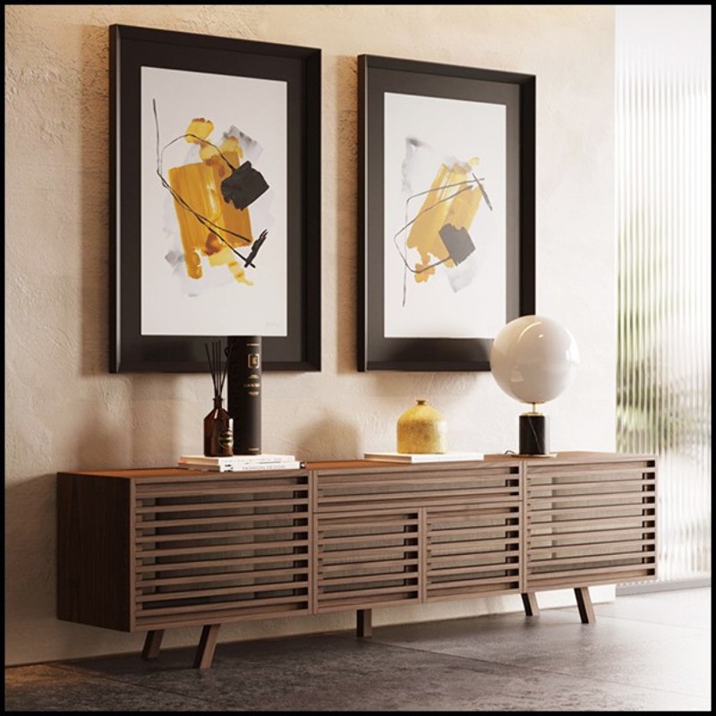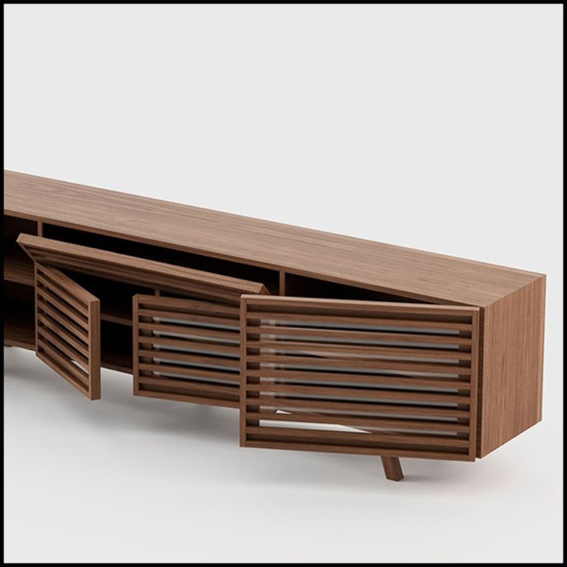 Sideboard Blind TV with a structure in veneer walnut wood in matte finish.