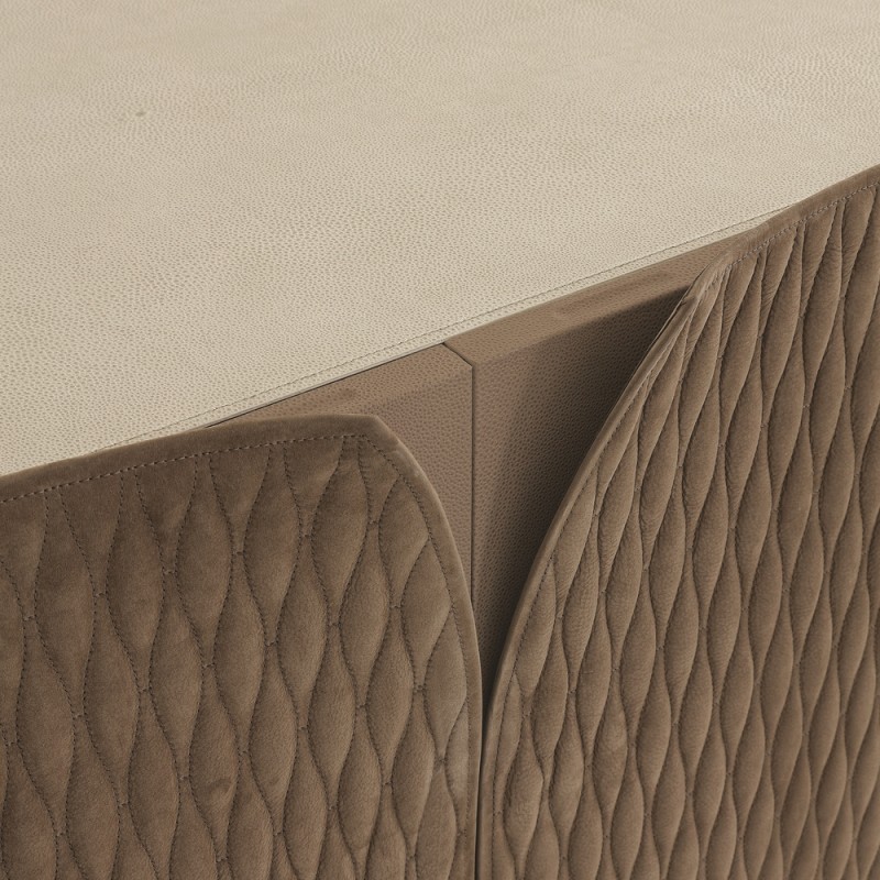 The sensation of touching the leather and the metallic sheen of the finishes create a luxurious atmosphere that is timeless, perfectly suited to a luxury sideboard like this one, with its impressive dimensions of 160.8X50XH55.