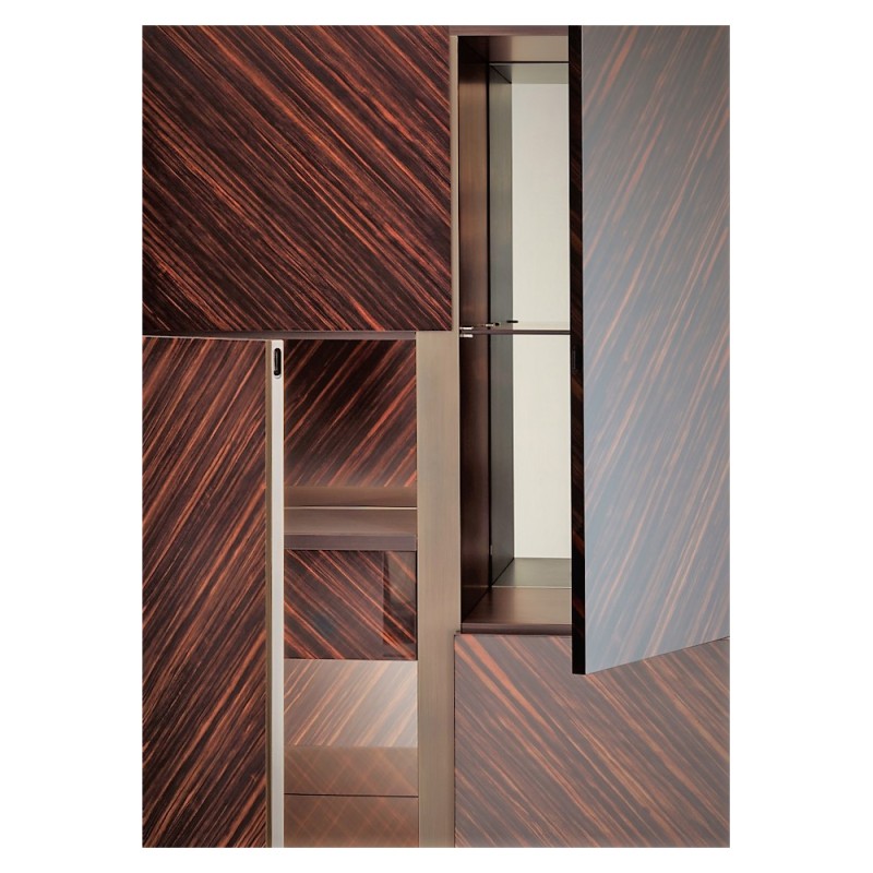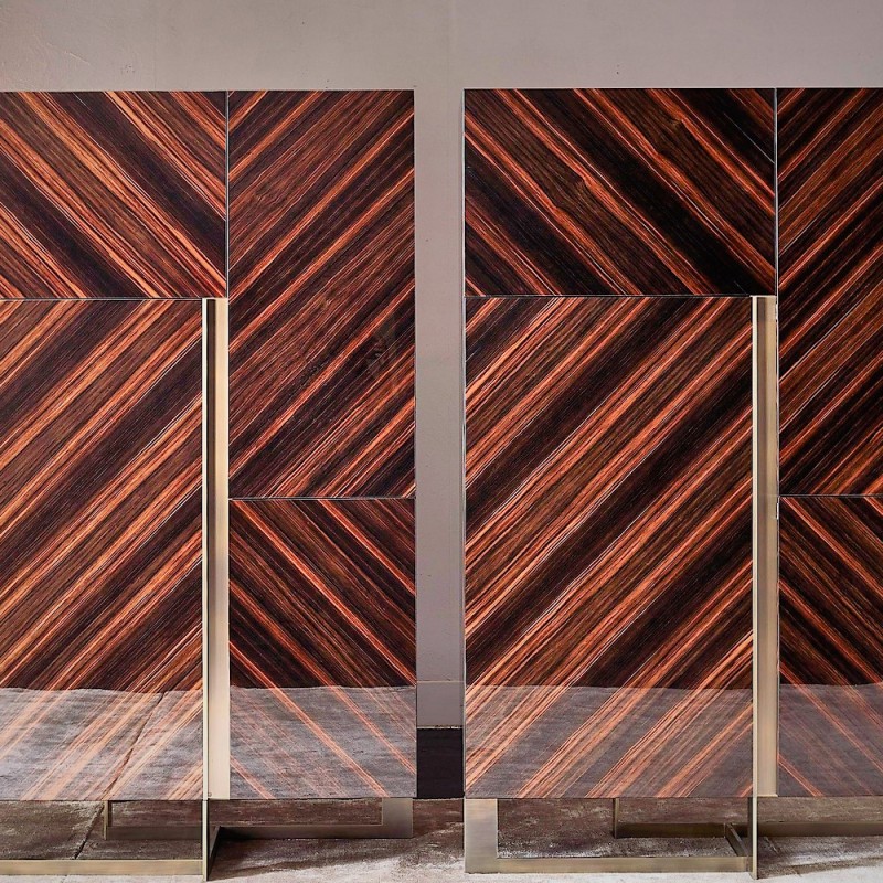 The finesse of the brass finish paired with the robustness of the contemporary design offers a unique visual experience, while the noble materials used evoke a sense of timeless luxury. The generous dimensions (120 × 50 × H190) allow for ample storage.