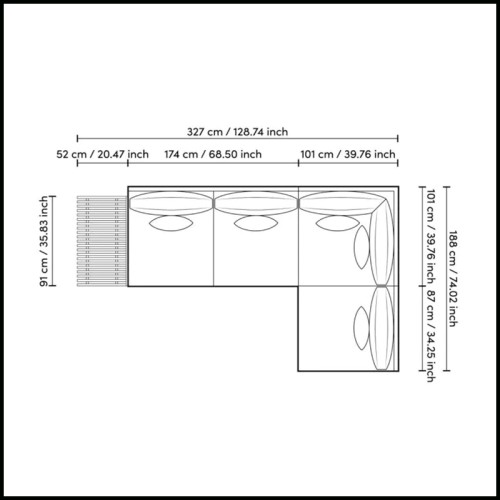 L. 174 - 101 - 87xD101xH 84cm