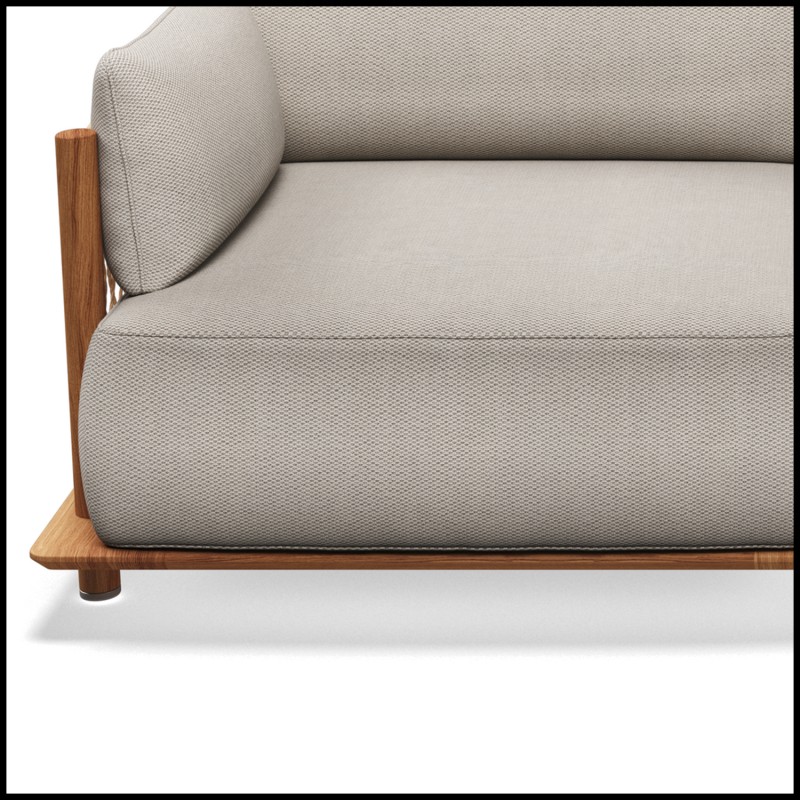 natural Teak, Wicker and Stainless Steel. Upholstered