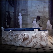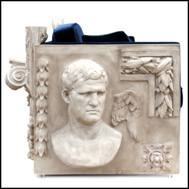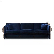 Sofa in with wooden structure and sculpted panels with dark blue fabric finish 145-French Castle