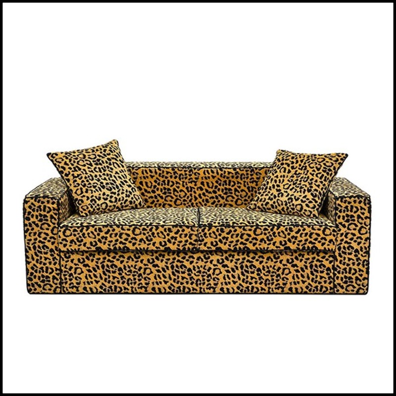 Sofa with wooden structure with velvet leopard fabric 162-Leopard 2 Seater