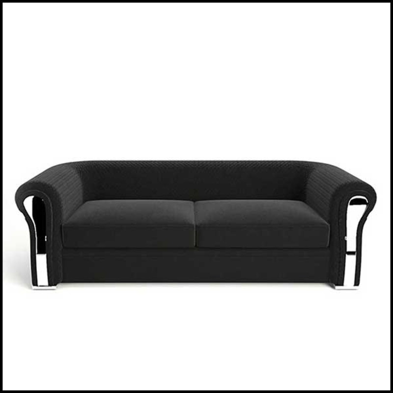 Sofa with solid wood structure and covered with black genuine leather nubuc 150-Bruce