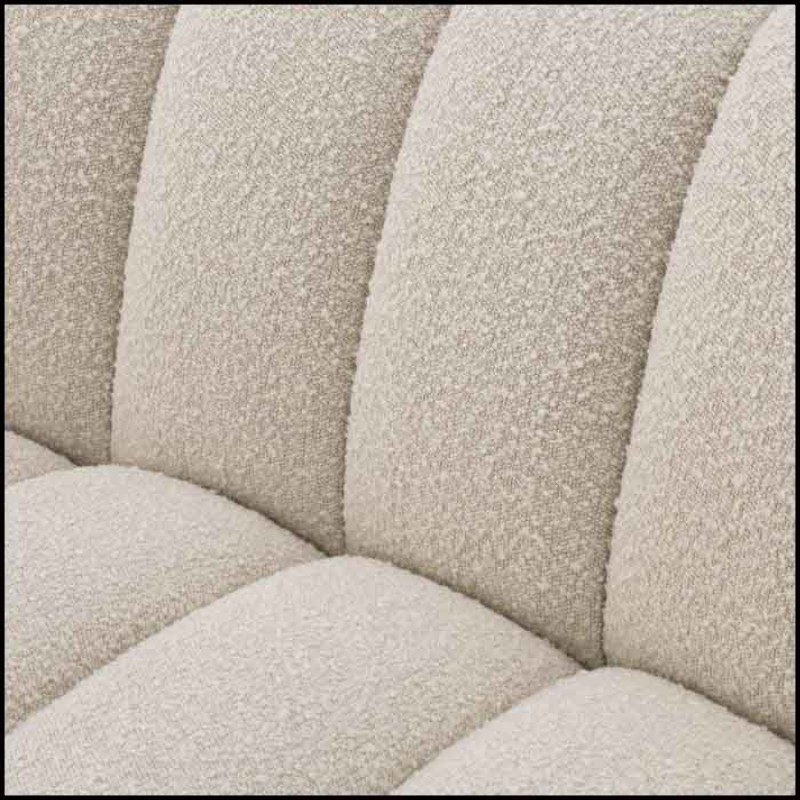 Sofa Kelly upholstered in cream-coloured bouclé with a black base,