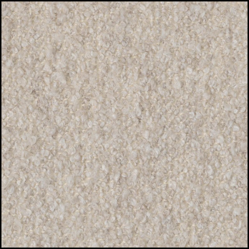 Upholstered in soft chalk white bouclé fabric, it blends into